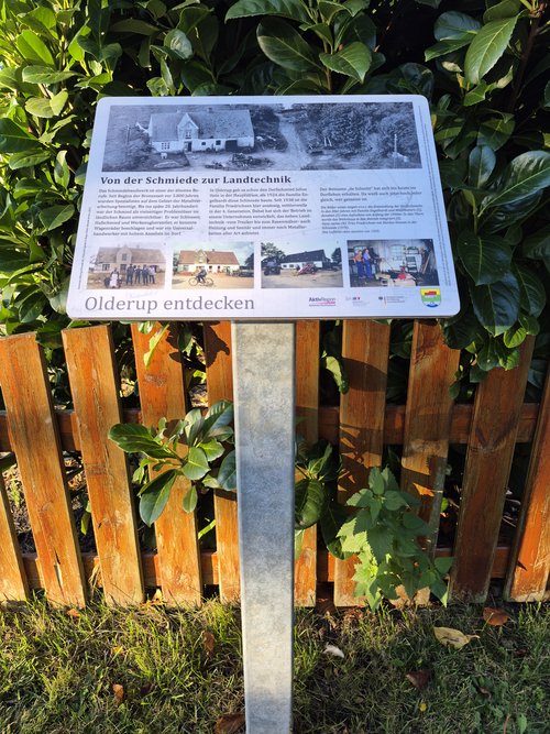 Installierung eines Systems von Infotafeln zu bedeutsamen Gebäuden, Institutionen und Landschaftsmerkmalen in der Gemeinde Olderup.